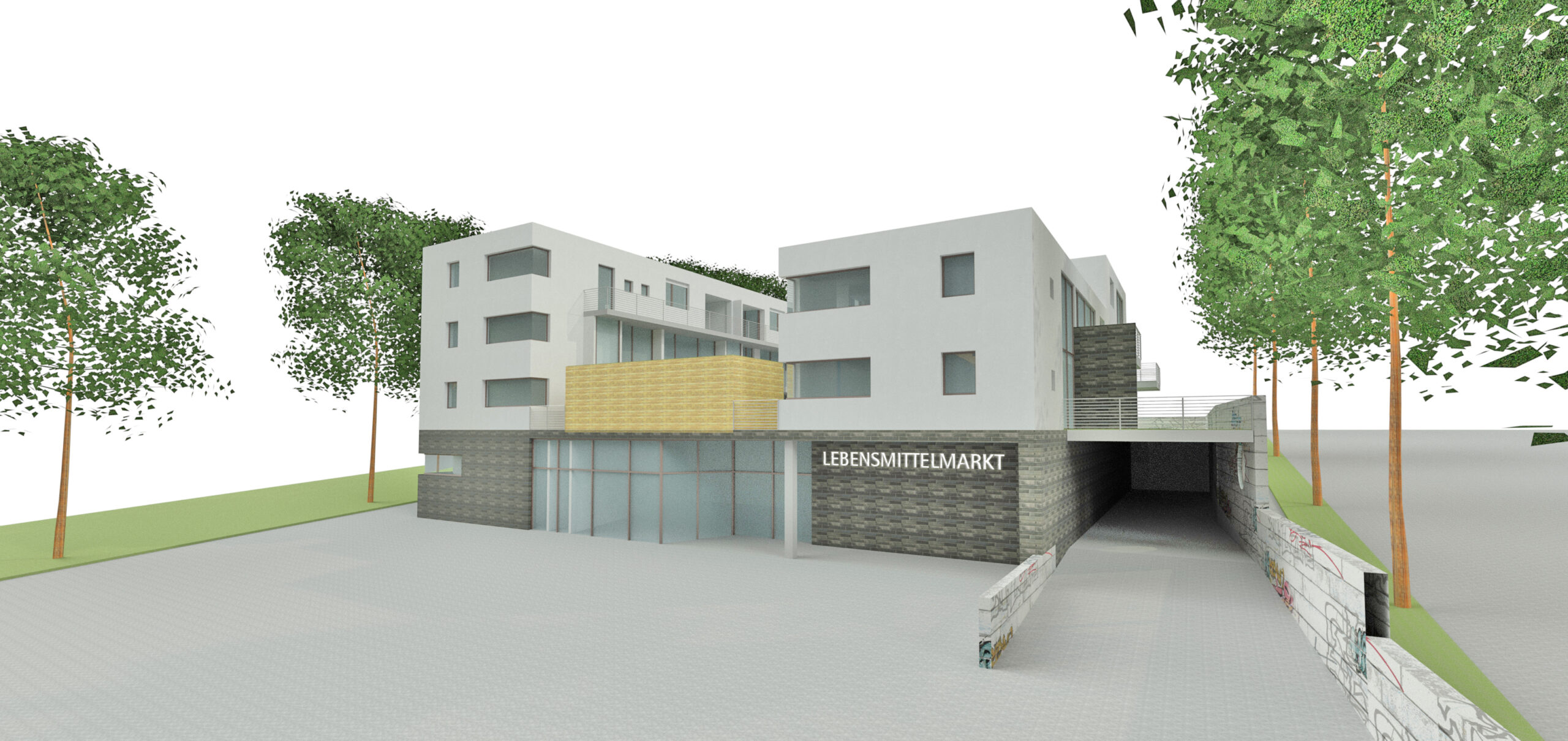 Neubau eines Lebensmittelmarktes mit Wohnungen in den Obergeschossen